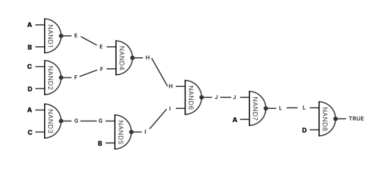 A NAND logic gate (acronym for NOT AND) is one of the fundamental logic gates in digital electronics. It has two inputs and one output. The NAND gate produces a FALSE (0) output only when both of its inputs are TRUE (1). In all other cases, it produces a TRUE output. Mathematically, the NAND operation is the negation of the AND operation, hence the name "NOT AND."