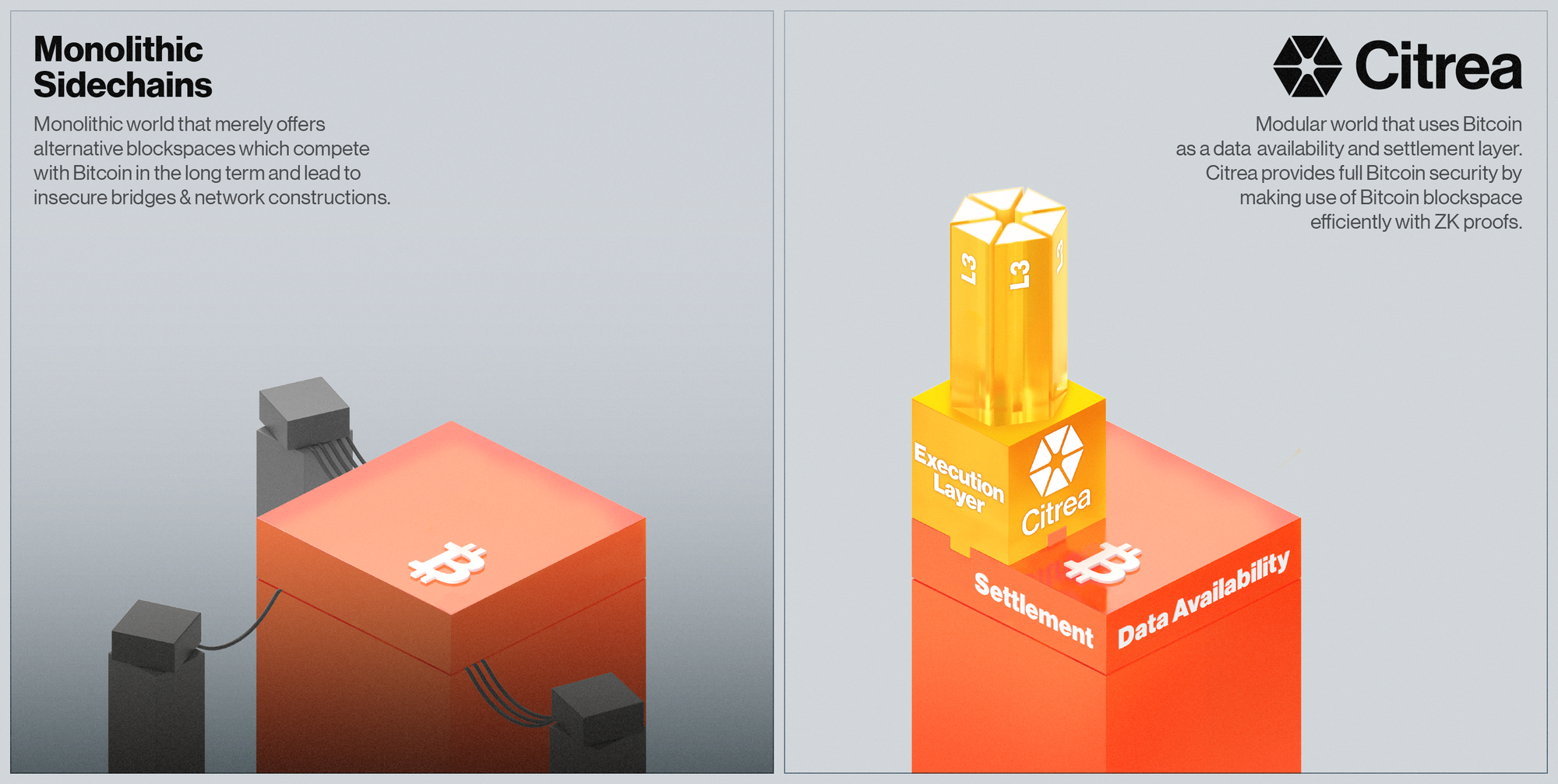 The Bitcoin scalability landscape has long been dependent on solutions that move security and demand off-chain, off-Bitcoin. Citrea is set to change this reality by scaling Bitcoin in its entirety with zero-knowledge proofs, ensuring on-chain verifiability and data availability within the Bitcoin network. This approach makes Citrea the first scaling solution to enable more complex applications without compromising Bitcoin security and changing its consensus rules.